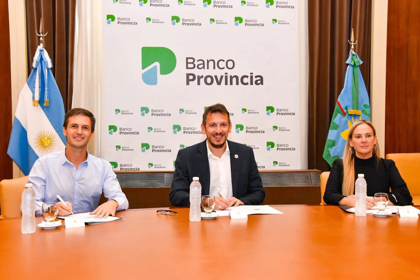 El presidente del Banco Provincia, Juan Cuattromo; la presidenta de Provincia Leasing, Valeria Dallera; y el intendente de San Vicente, Nicolás Mantegazza; se reunieron para realizar la firma de un contrato que posibilitará la compra de bienes destinados a la mejora de los servicios públicos de San Vicente.
